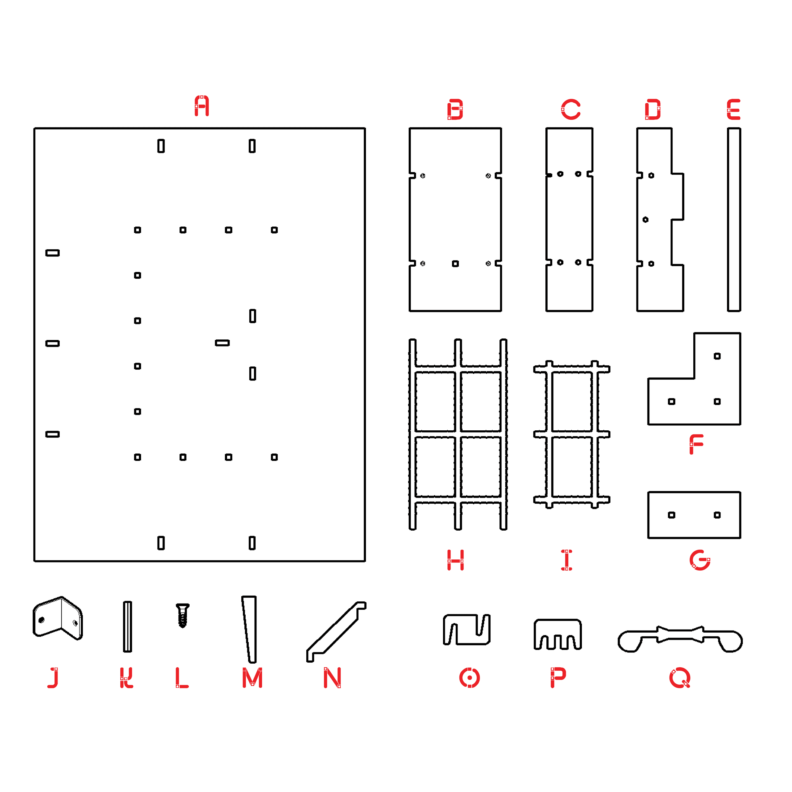 Using the screwdriver with the S1 bit, screw 4 screws (L) into the Form Panel (B). There are 10 panels to prepare for your formwork