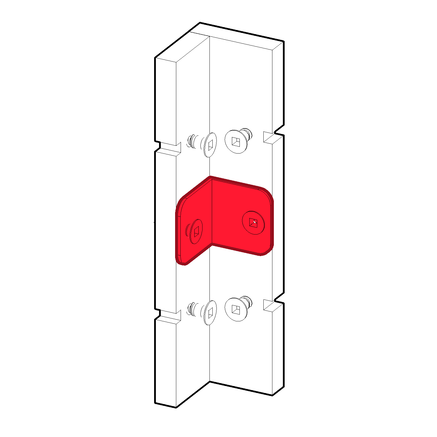 Connect your 2 Form Corner Panels (D) using the Angle Brace (J) using 2 screws (L).