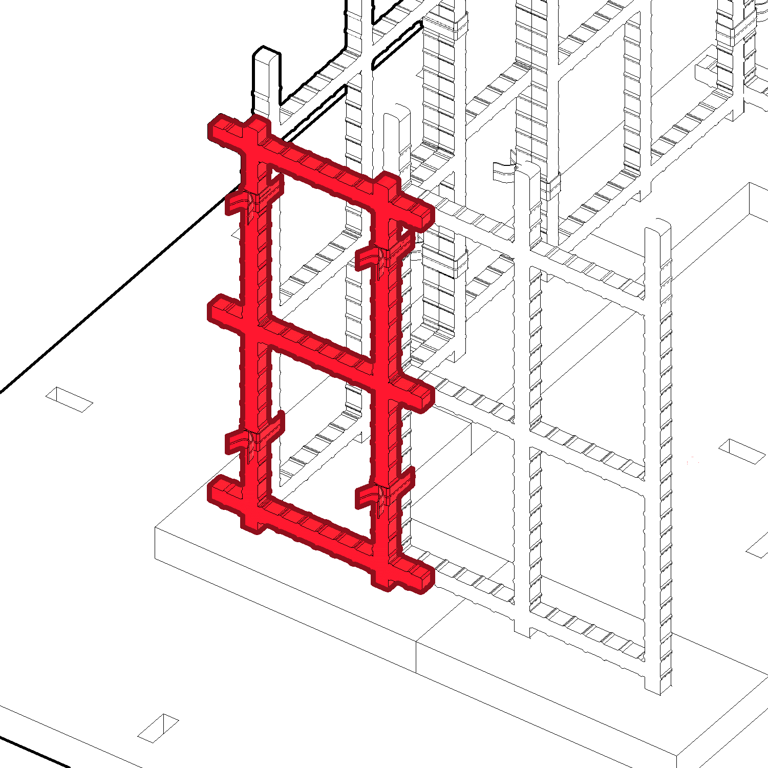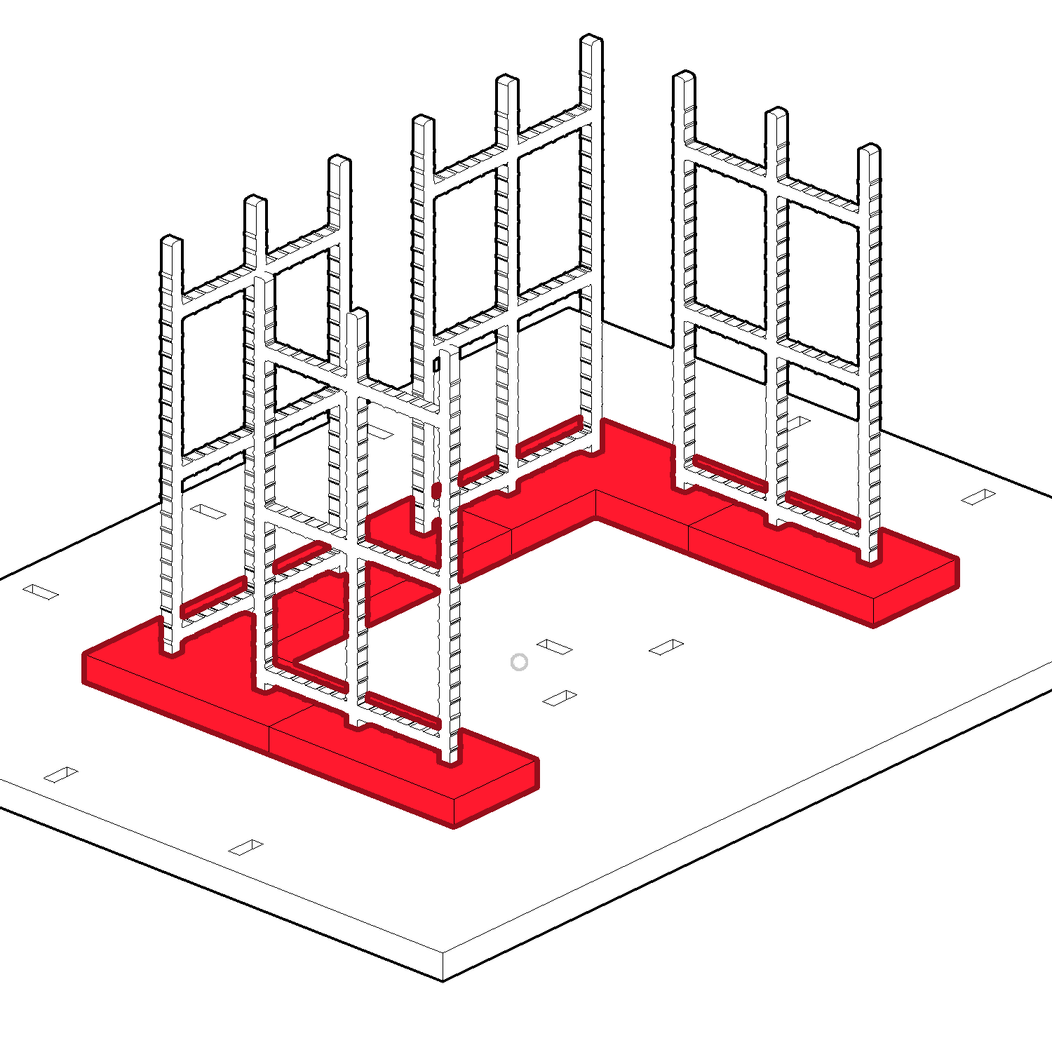 Tie the 3 Footing Ladders (I) to the gaps between the Rebar Grids (H) using the Rebar Ties (K)