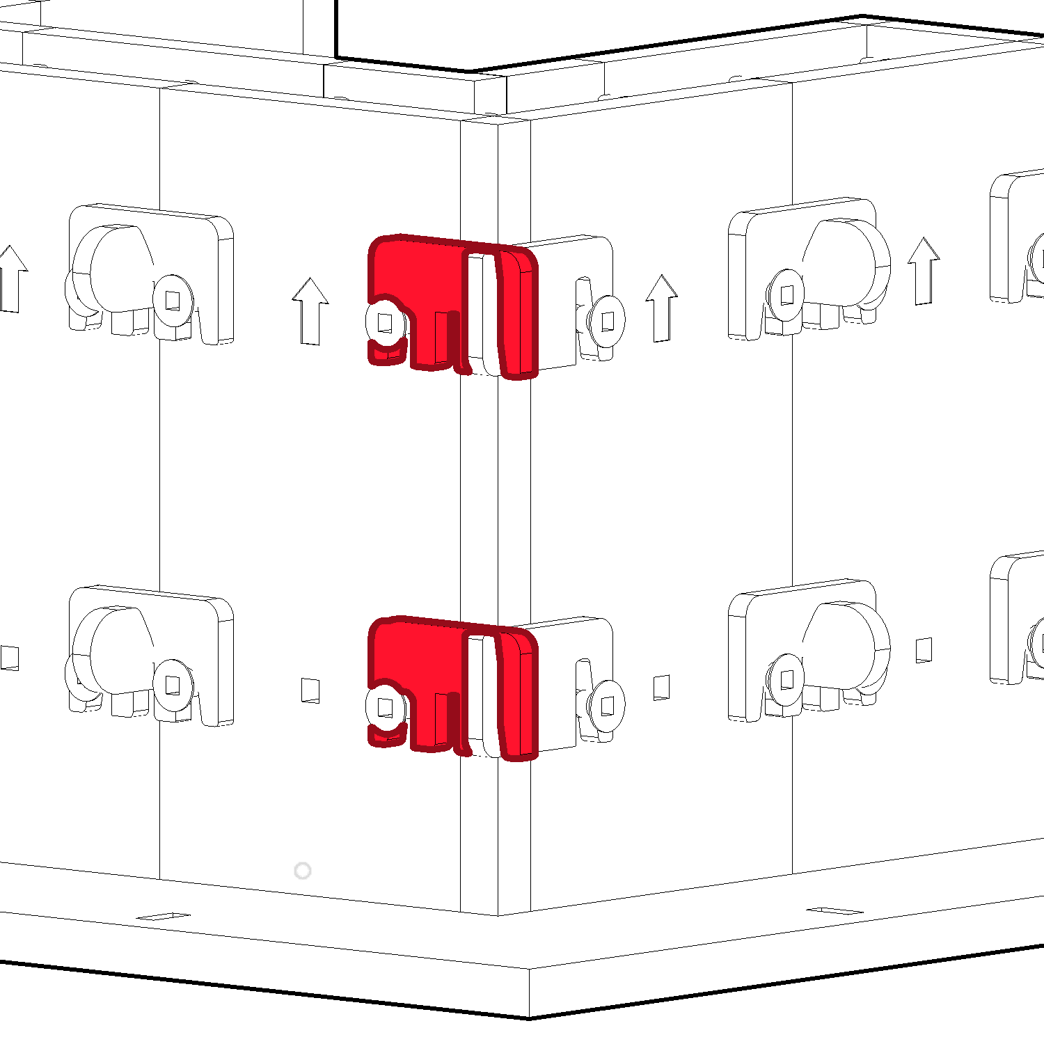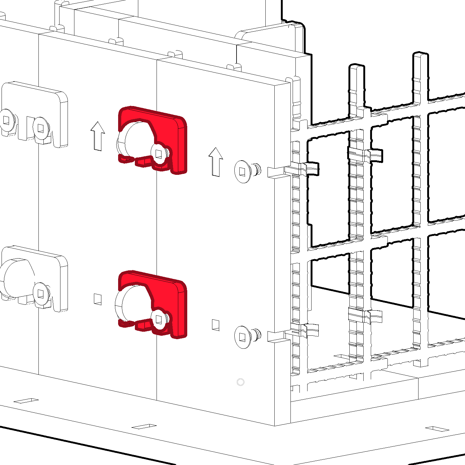 To Connect in-line form panels, use the E-Clips (P) by pressing them down from the top.