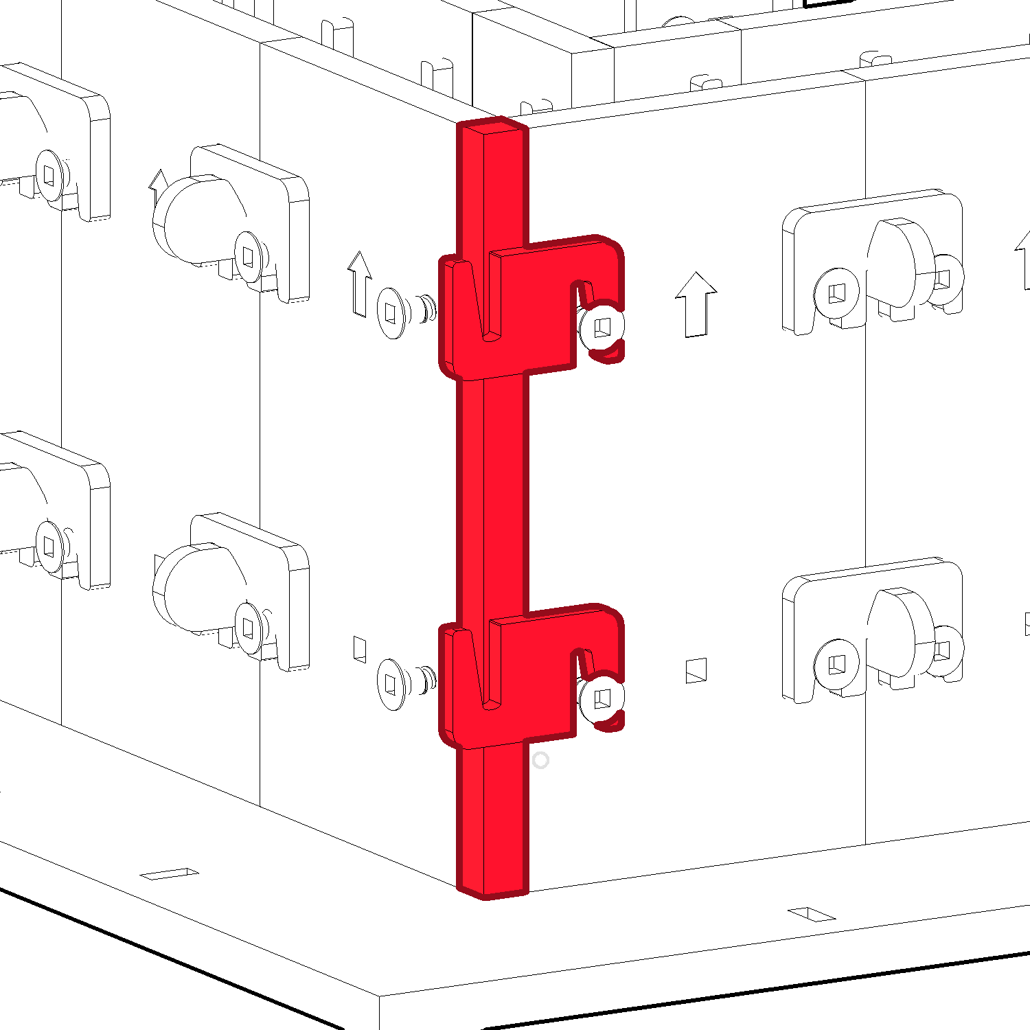 To Join an outside corner, first place a Corner Post (E) and 2 S-Clips (O).