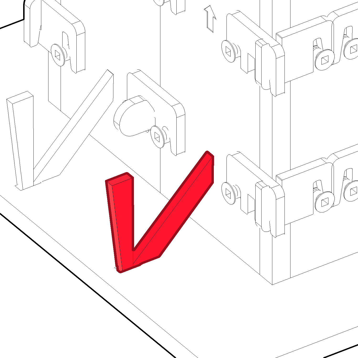 Using the screwdriver with the S1 bit, screw 2 screws (L) into the Form Corner (D). There are 4 panels to prepare for your formwork. Leave the middle hole empty for the next step